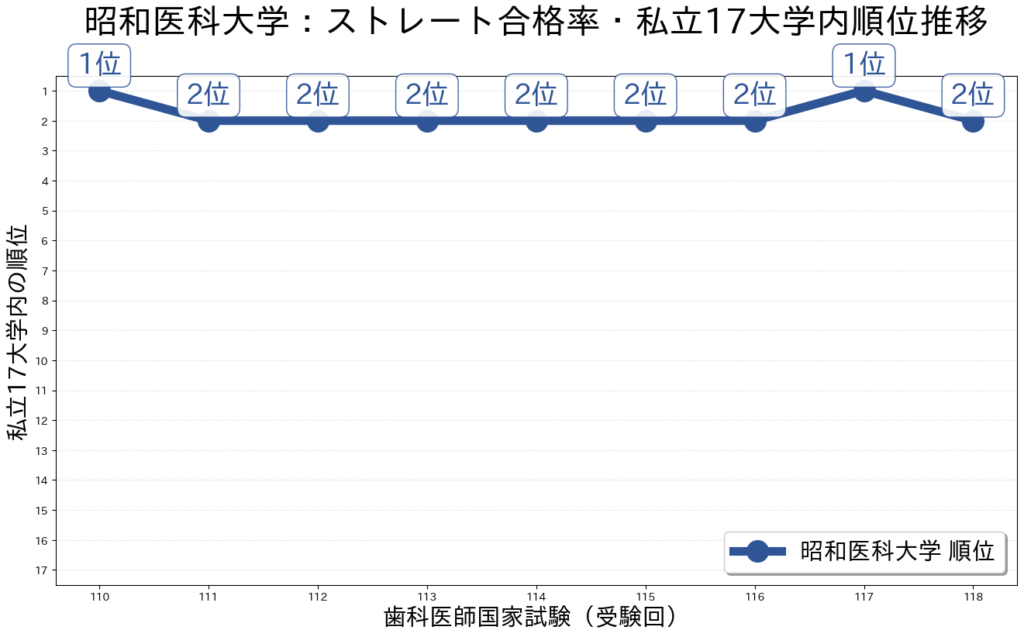 この順位推移は、私立歯学部における「二強体制」を如実に表しています。