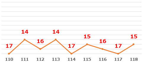 第110回、第114回、および第117回では17校中17位(最下位)を記録する一方、第111回や第113回では14位と、下位圏内での変動が激しい傾向が見られました。