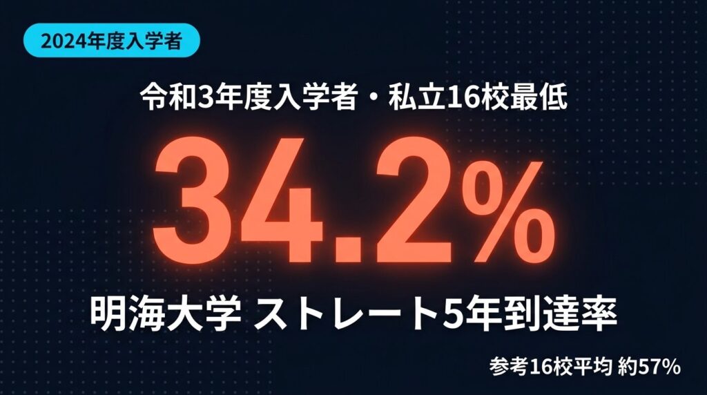 - ストレート5年到達率は大学差最大46pt。受験校選びの段階で確認しておきたい指標